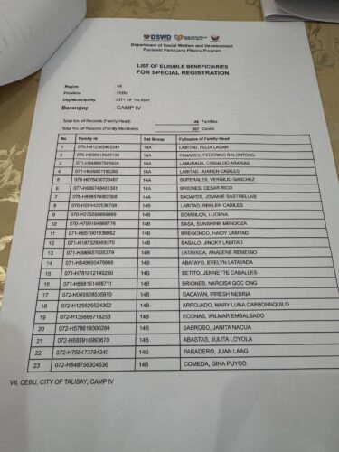 Kung adunay pangutana, mahimo mo mobisita sa DSWD–4Ps/Pantawid Office.